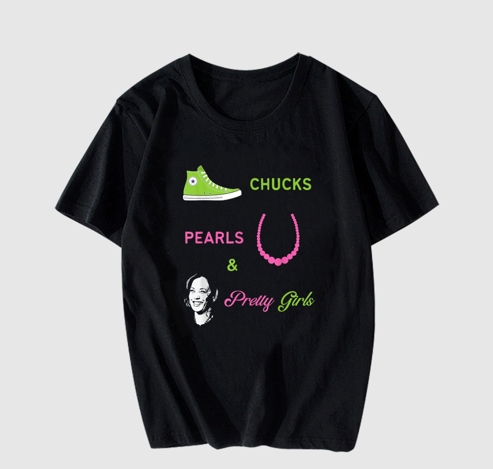Have Questions about the Chucks Pearls and Pretty Girls Kamala Harris Inauguration T Shirt thd? Please feel free to contact us, thank you for visiting!