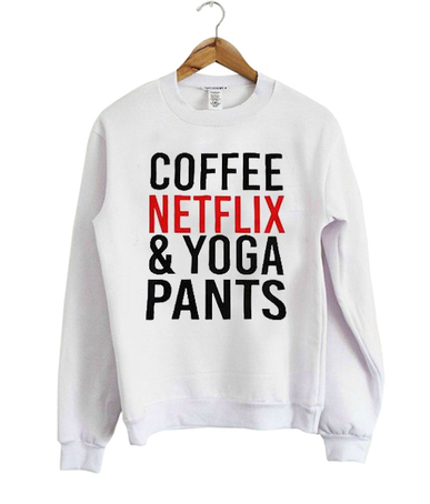 About the “Coffee Netflix & Yoga Pants Sweatshirt” from wearyoutry.com