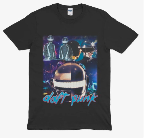 We use newest DTG Technology to print on to Daft Punk Vintage Homage T-shirt.