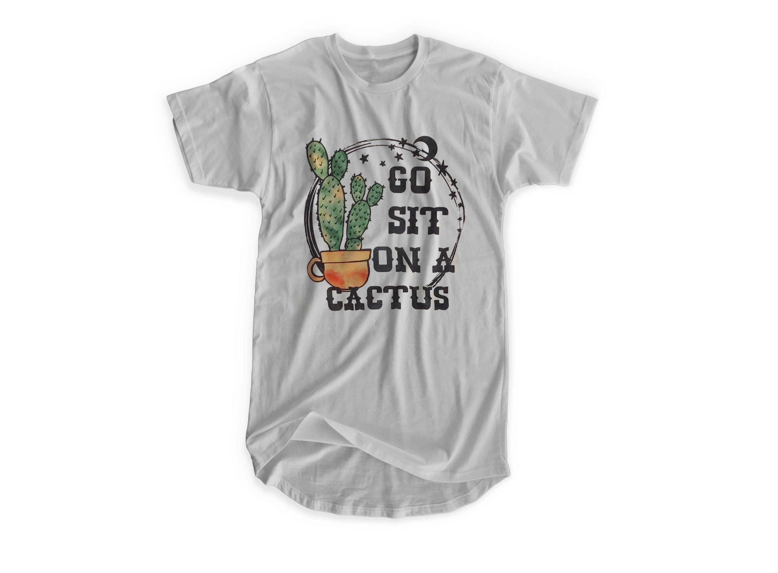 We use newest DTG Technology to print on to Go Sit On A Cactus T-shirt.