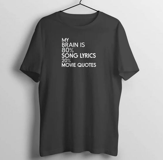 Have Questions about the My Brain is 80% Song Lyrics 20% Movie Black T Shirt thd? Please feel free to contact us, thank you for visiting!