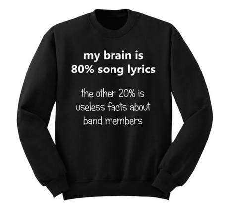 About the “My Brain is 80% Song Lyrics Sweatshirt” from wearyoutry.com