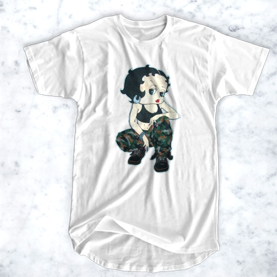 We use newest DTG Technology to print on to Veteran Army Betty Boop T-shirt .